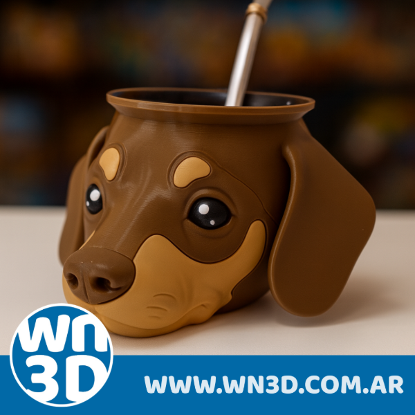 mate 3D, mate perro salchicha, mate personalizado, impresión 3D argentina, mates originales, WN3D, mates únicos, regalos personalizados, dog lovers, diseño 3D.