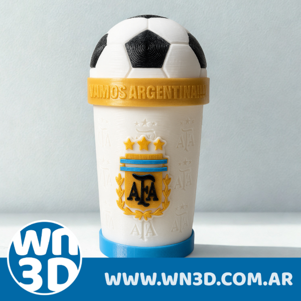 Los vasos están realizados en impresión 3d totalmente personalizados. Podes ponerle nombre, número de camiseta, etc.