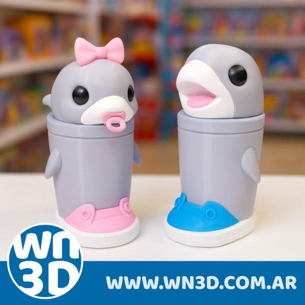 vaso 3D, Tralalerito, Tralalerita, vaso delfín, vaso personalizado, impresión 3D, regalo infantil, vaso decorativo, WN3D, diseño original.